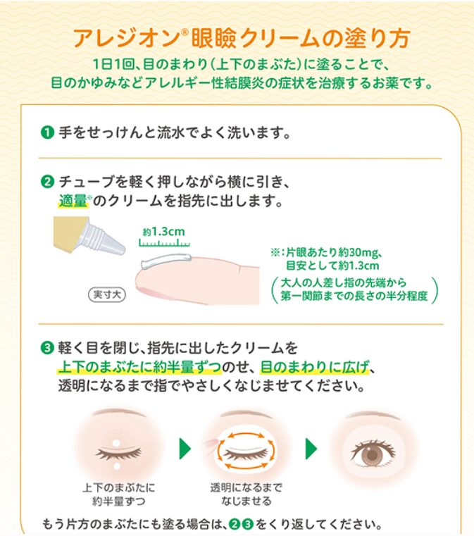 目のかゆみが気になる場合、1日1回塗る薬も好評です。